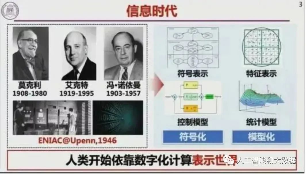 信息時代,艾克特25歲帶領(lǐng)團(tuán)隊做出了第一個計算機(jī)系統(tǒng)。馮·諾依曼給出了現(xiàn)代計算機(jī)系統(tǒng)的新架構(gòu),并沿用至今。計算機(jī)推動了世界的數(shù)字化,包含兩個歷程,一個是符號化,二是模型化。數(shù)字是表達(dá)現(xiàn)象,模型化是對現(xiàn)象的理解過程。