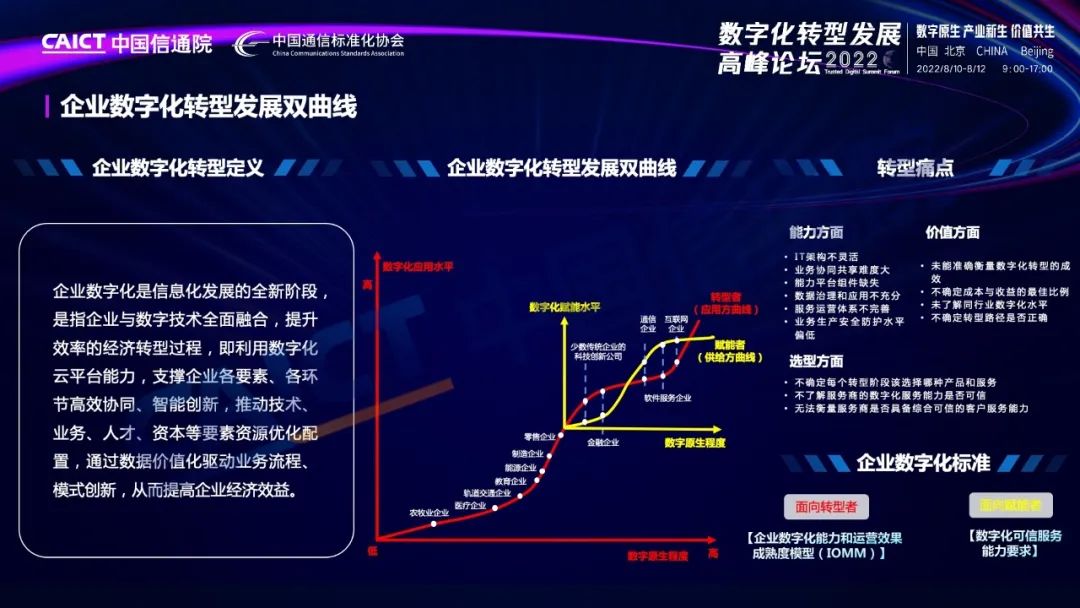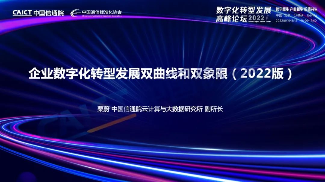 2022年8月10日,由中國信息通信研究院(以下簡稱“中國信通院”)和中國通信標(biāo)準(zhǔn)化協(xié)會聯(lián)合主辦的2022數(shù)字化轉(zhuǎn)型發(fā)展高峰論壇在北京召開。在上午主論壇上,中國信通院云計算與大數(shù)據(jù)研究所副所長栗蔚發(fā)布了《企業(yè)數(shù)字化轉(zhuǎn)型發(fā)展雙曲線和雙象限(2022版)》并進(jìn)行了詳細(xì)解讀。