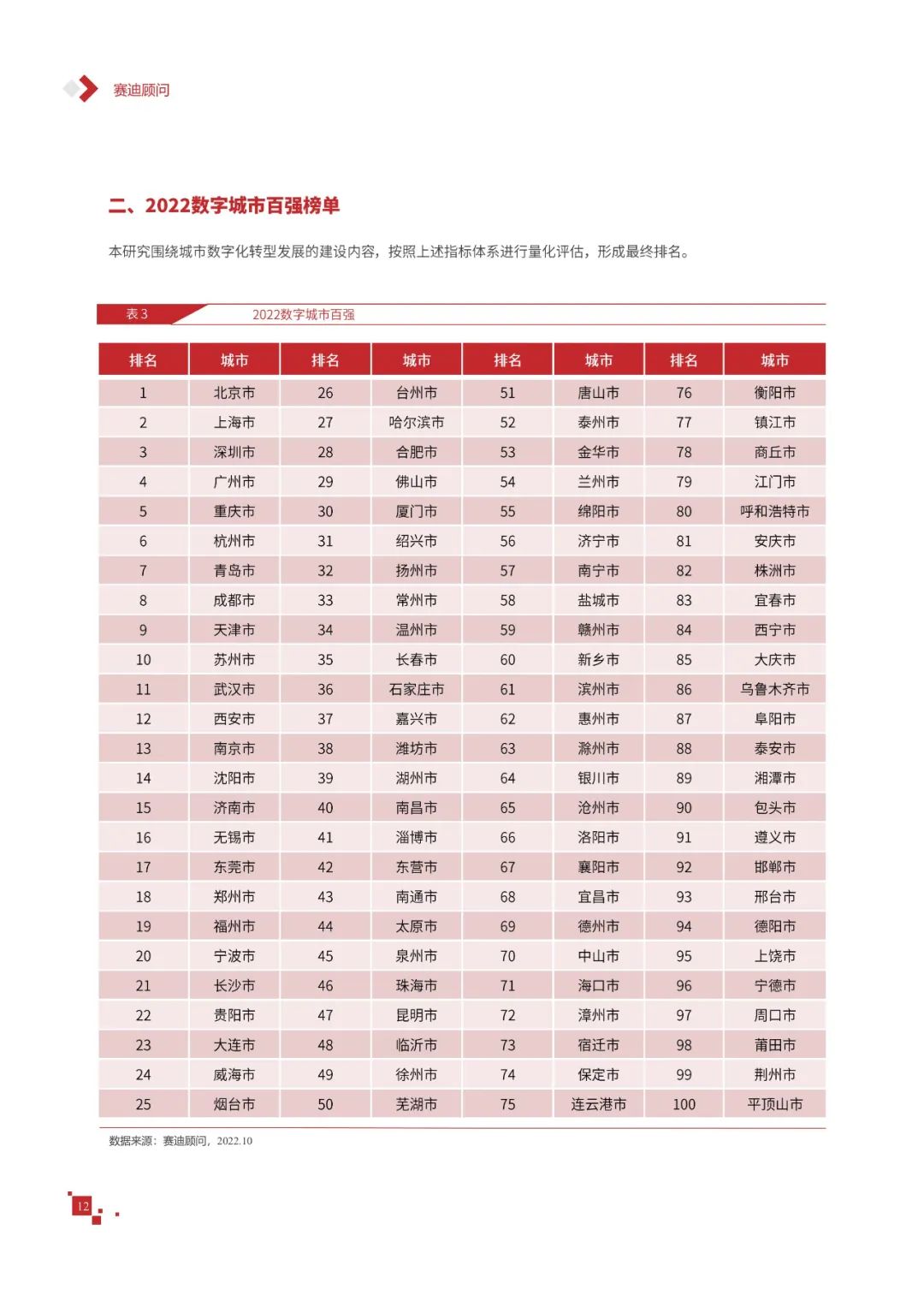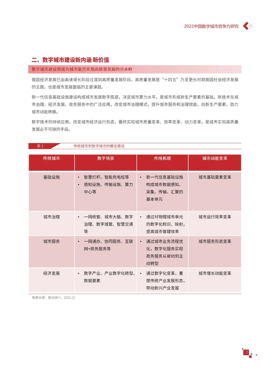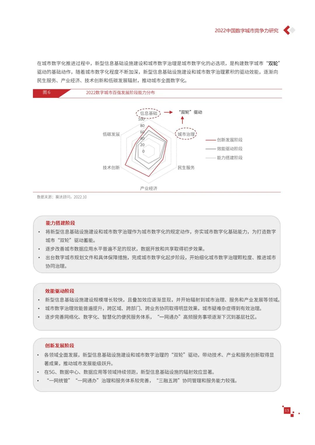 為深入推動城市數(shù)字化、智慧化發(fā)展,樹立優(yōu)秀的城市作為標桿,2022年中國數(shù)字城市百強研究從信息基礎、城市治理、產(chǎn)業(yè)經(jīng)濟、民生服務、技術(shù)創(chuàng)新、低碳發(fā)展等六個方面,全面評估中國數(shù)字城市競爭力,剖析數(shù)字城市建設路徑和方法,為深化中國數(shù)字城市高質(zhì)量發(fā)展奠定基礎。