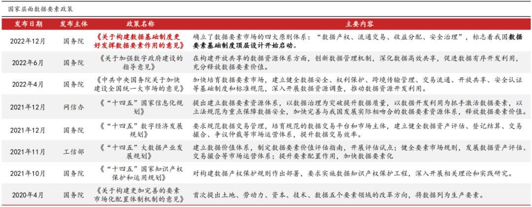 數(shù)據(jù)要素:政策持續(xù)推動,基礎(chǔ)制度頂層設(shè)計啟動