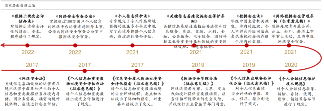 相關(guān)法規(guī)條例:《網(wǎng)絡(luò)安全審查辦法》《數(shù)據(jù)出境安全評估辦法》《網(wǎng)絡(luò)數(shù)據(jù)安全管理條例 (征求意見稿)》等;