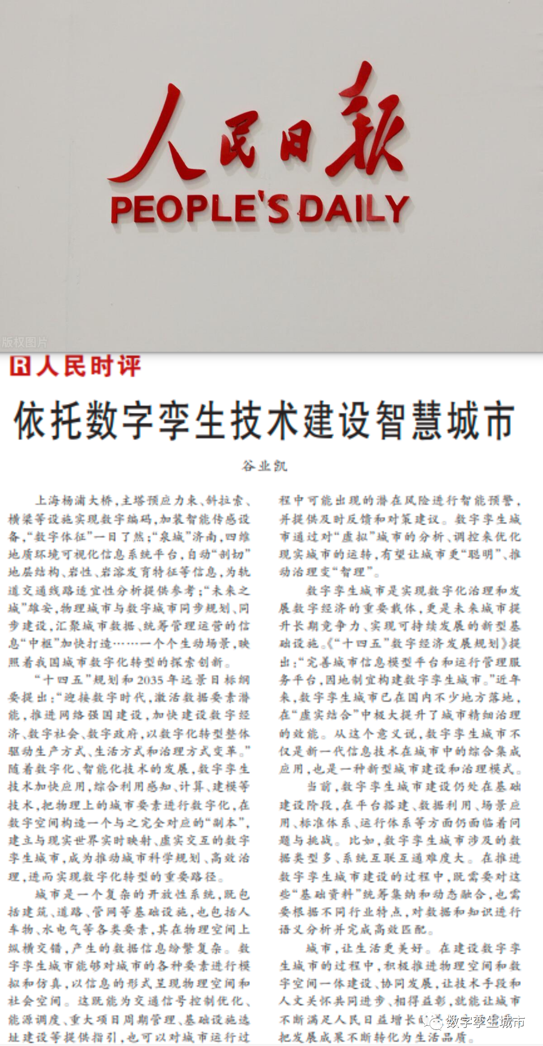 人民日報:依托數(shù)字孿生技術(shù)建設智慧城市
