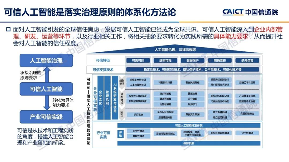 (四) 可信人工智能已成為落實治理要求的重要方法論。