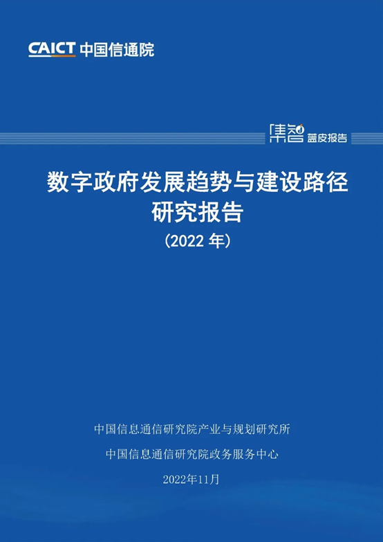 中國(guó)信通院發(fā)布《數(shù)字政府發(fā)展趨勢(shì)與建設(shè)路徑研究報(bào)告(2022年)》
