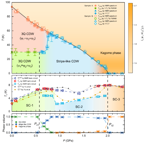 圖2.籠目超導(dǎo)體CsV3Sb5中電荷密度波態(tài)與超導(dǎo)態(tài)隨壓力演化的競(jìng)爭(zhēng)物理相圖