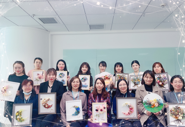 冰心曾經(jīng)說過:世界上若沒有女人,這世界至少要失去十分之五的“真”、十分之六的“善”、十分之七的“美”。在這個春意盎然的三月,伴隨著春天的腳步,我們迎來了”三八“女神節(jié),在這個孕育希望的美好時刻,公司行政部的同事們提前為每一位女神辦公桌上送上節(jié)日的驚喜,同時舉辦了一場特殊的茶話會,干花制作——綻放你的美;五彩繽紛的干花在心靈手巧的女神們手中變成了一幅幅精美的畫,都說女人如花,節(jié)日里怎么少的了花呢!吐魯番項目組的紳士們也悄悄準(zhǔn)備了玫瑰花送上屬于他們的祝福。
